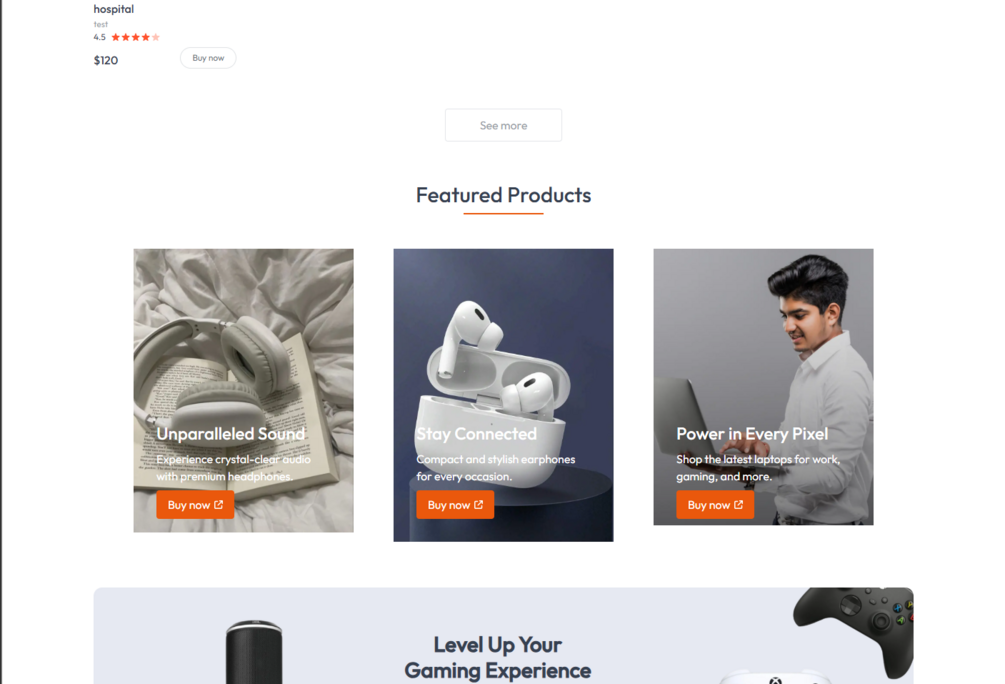 Experience a modern, developer-friendly E-commerce UI built with Next.js 14 App Router for fast performance and seamless routing. Styled with Tailwind CSS, this project offers a clean and responsive design out of the box.