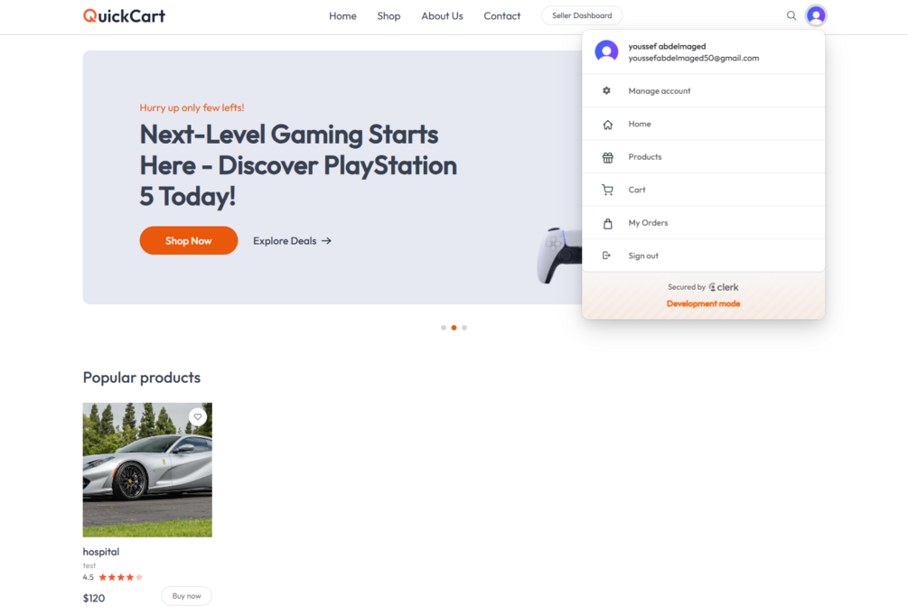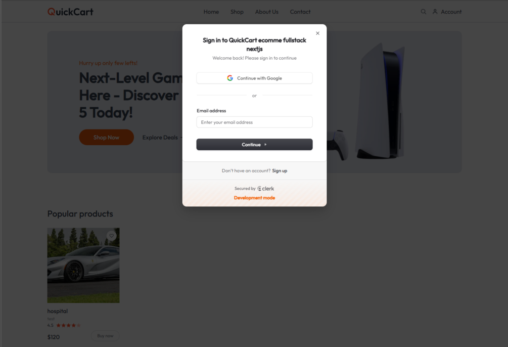 You Will Get: A fully functional E-commerce UI built with Next.js 14 App Router Modern responsive design using Tailwind CSS Pre-built pages: Home, Product Details, and Cart Authentication system with Clerk (easy setup) Ready .env file for quick API & database integration (e.g., MongoDB) Clean and scalable code – easy to understand and extend Deployment-ready project (works on Vercel / Netlify)
